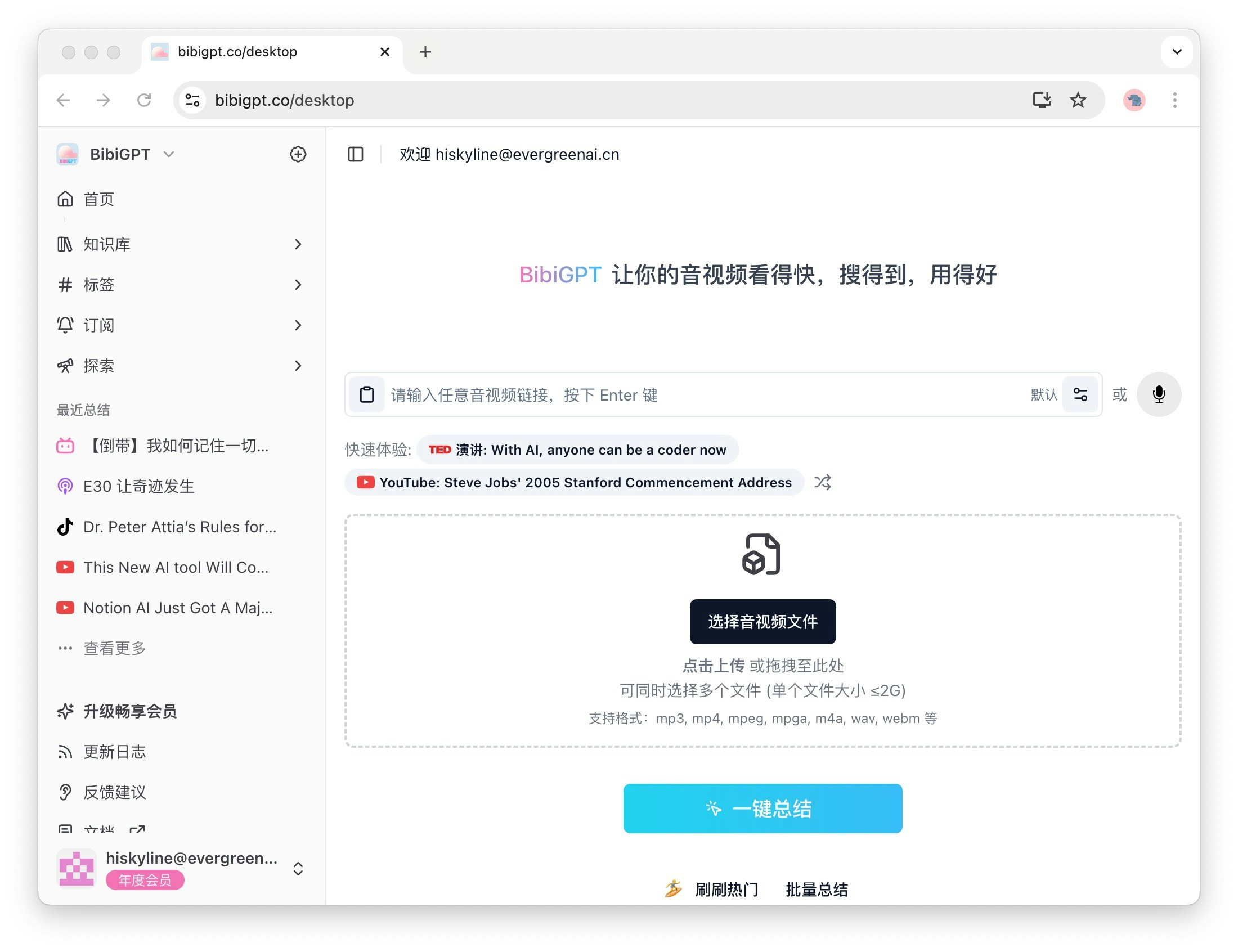 首页是音视频总结的主要入口,用户可以在此快速访问和管理自己的总结内容。无论是学习资料还是娱乐视频,首页都能为您提供便捷的访问体验。