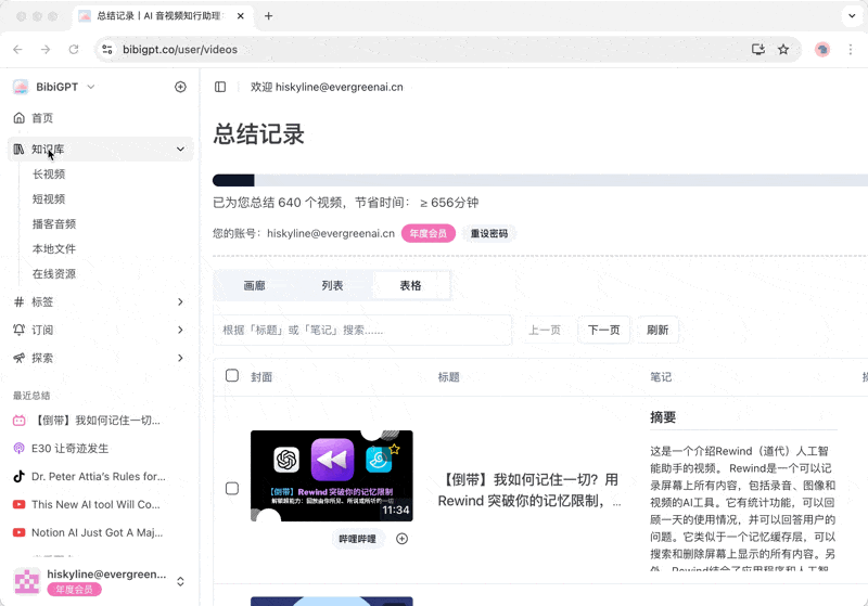 知识库是存储您曾经总结过的音频或视频的地方。这里的二级菜单包括长视频、短视频、播客音频、本地文件和在线资源,方便您快速找到所需的内容,提升信息检索的效率。